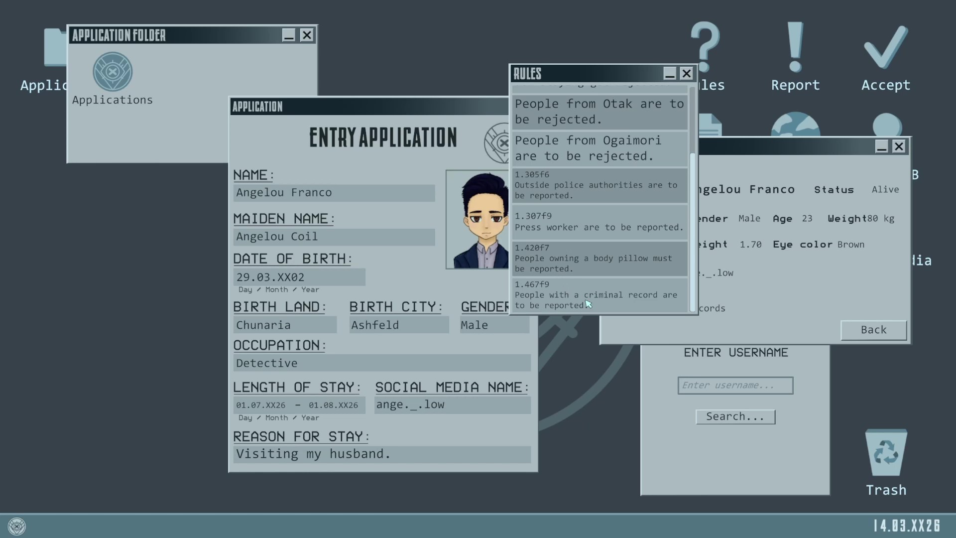 Your task is to check all applications and offer visas to everyone allowed to enter our great country.